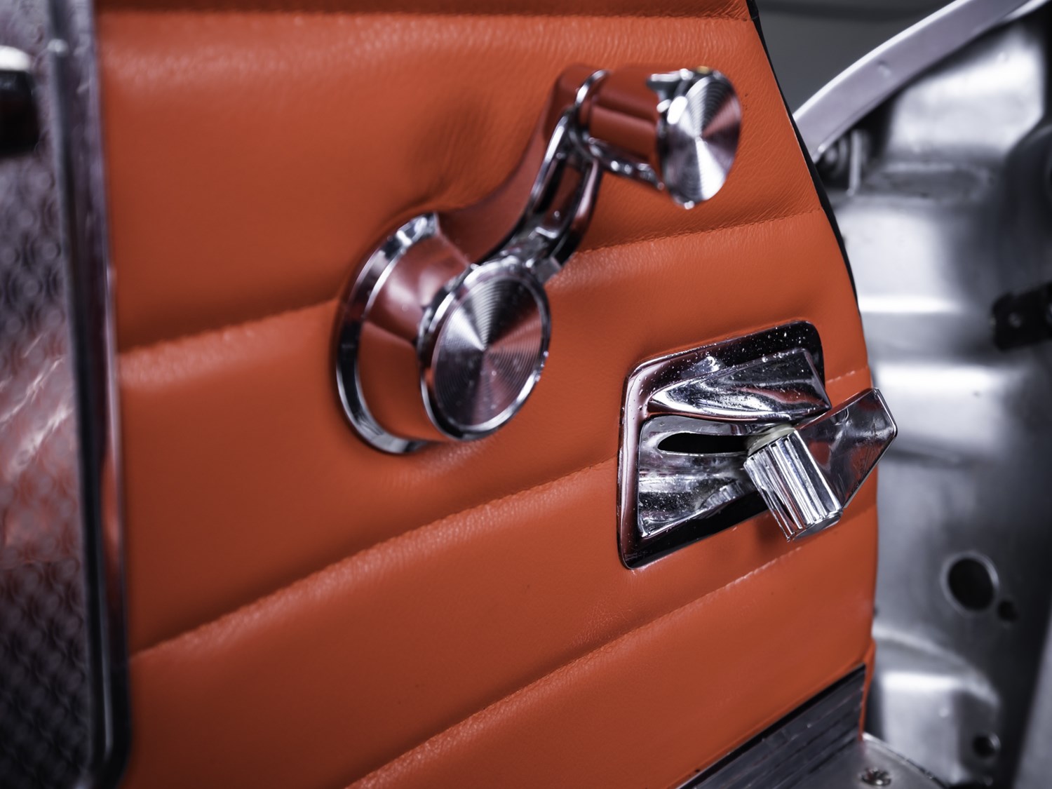 The lock tower for the 4 doors is a piece off art in its self, polish rostfree with leather in the car color on top, following the seat back angel.